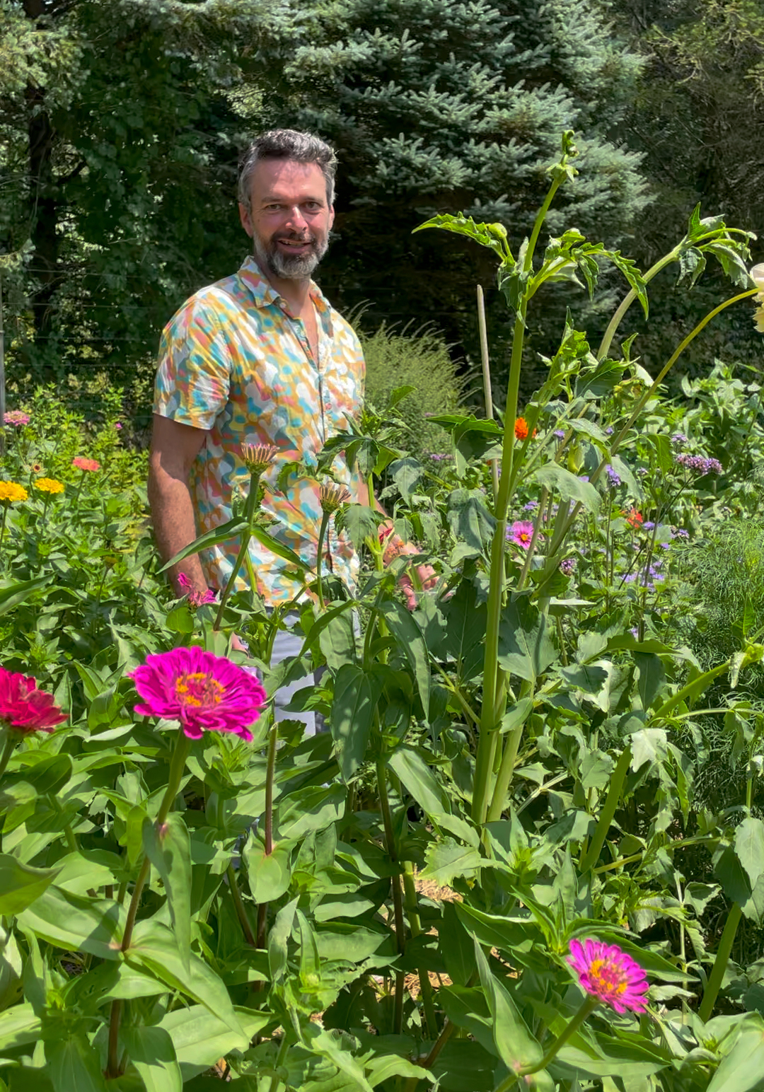 The flowers were from a local cutting garden - one year I will have my own...a work in progress! The color scheme was pink, burgundy and white - colors which look great with the dark natural linen napkins and placemats - a range of shades and textures including Cosmos and Ammi.