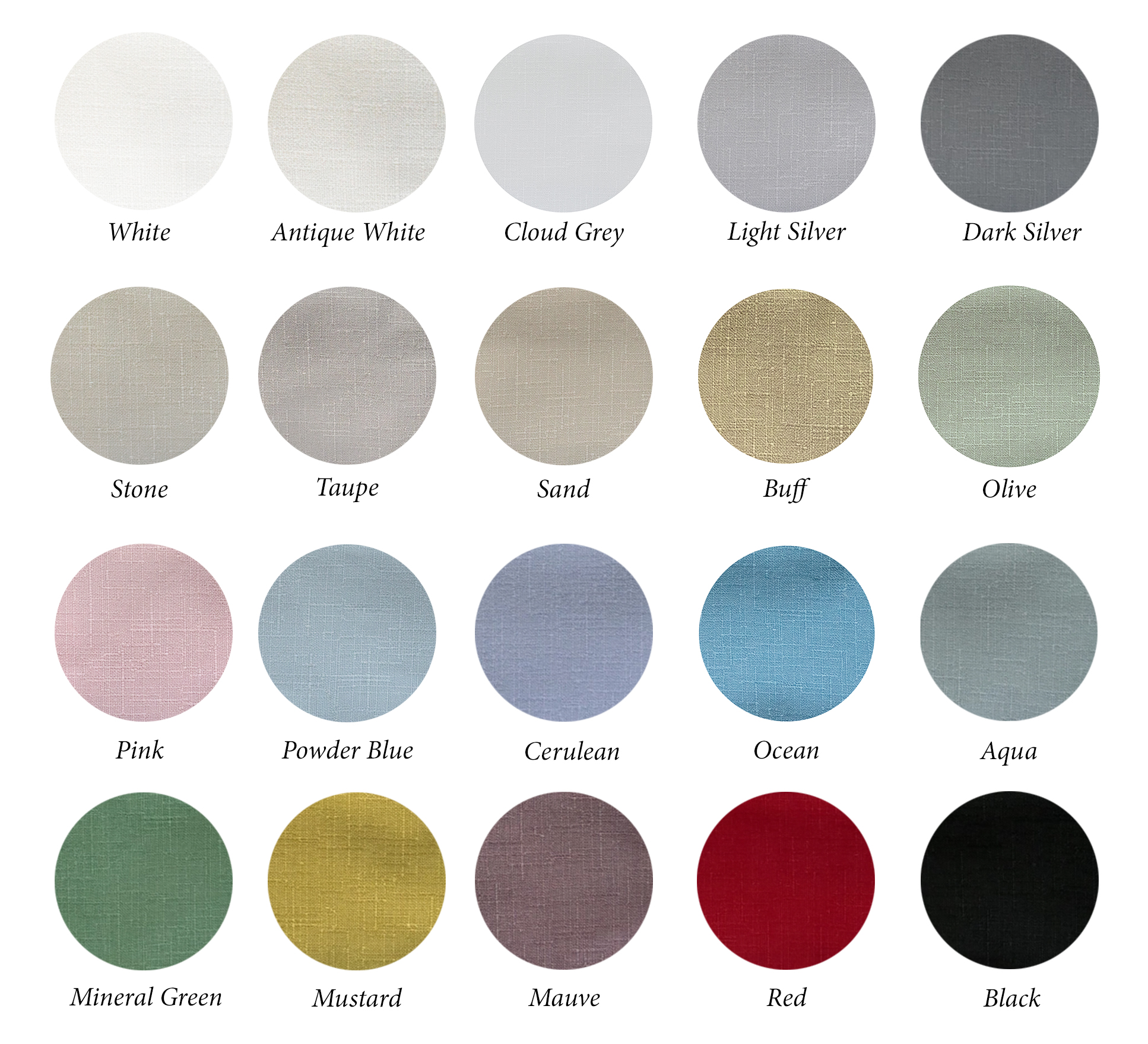 For a spring or summer table setting, the Olive Green Faux Linen is a perfect light green that pairs beautifully with other pastels and white.