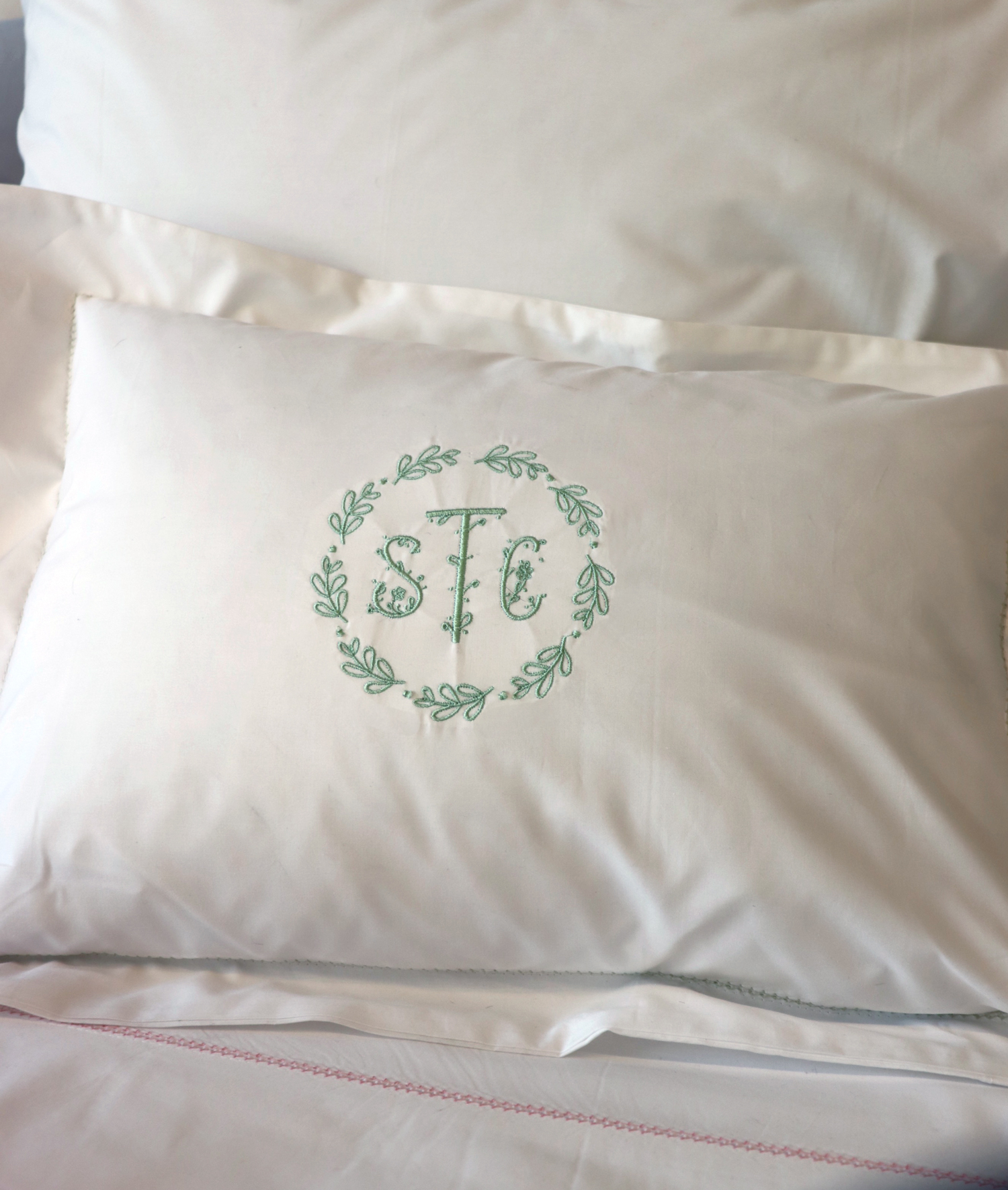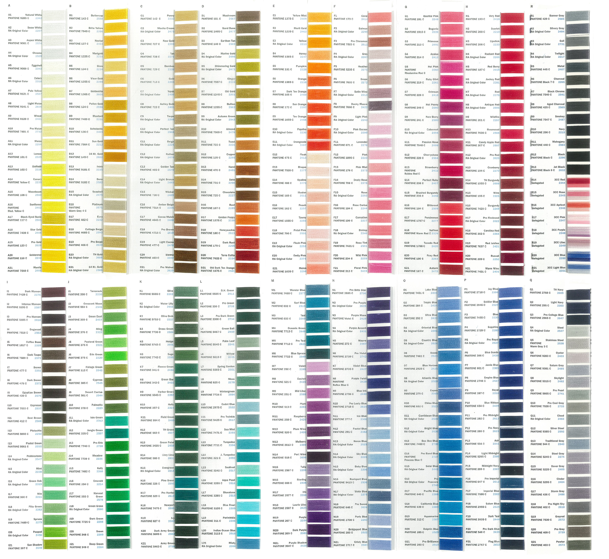 We can monogram any font, any image or combination of letters and images (logos, crests, mottos, likenesses) to any of our linens. And there are almost 400 embroidery colors to pick from (below) - the options are endless!