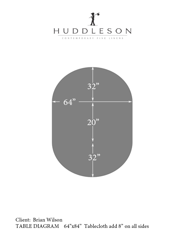 Send us an email or call 626 399 0320 to discuss your oval tablecloth and we will be happy to tailor it to your table.