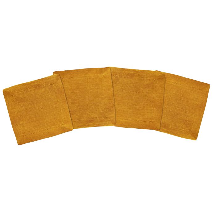 - – Vibrant solid colored saffron yellow gold linen cocktail napkin